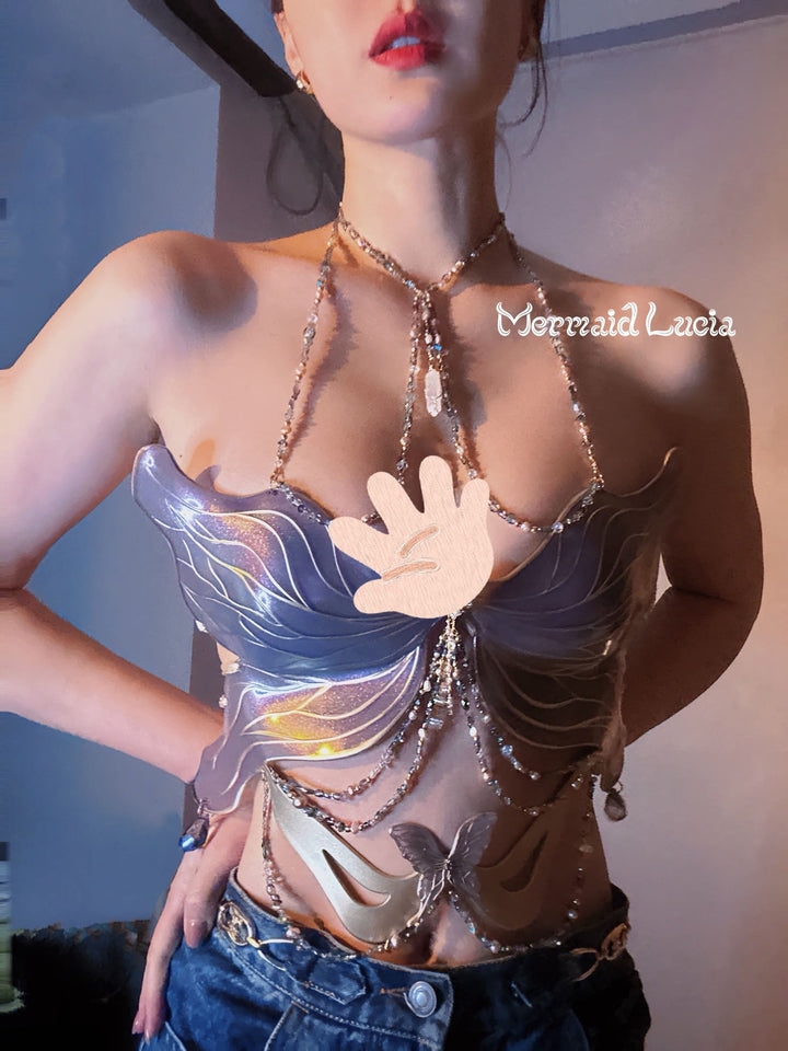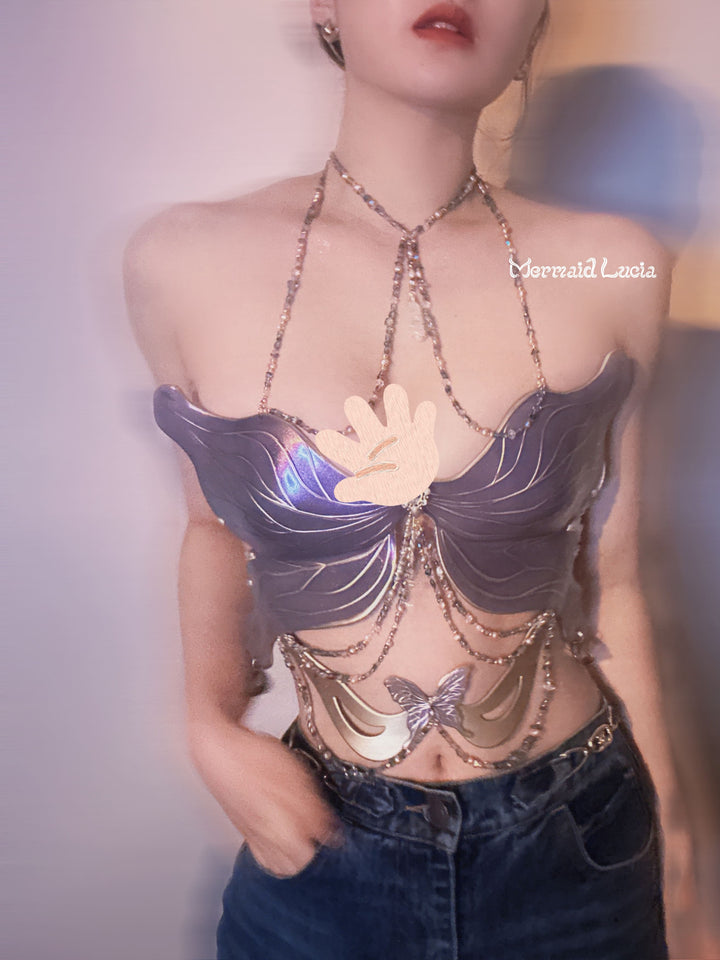 Butterfly Blossom Resin Mermaid Corset Bra Top Cosplay Costume Patent-Protected