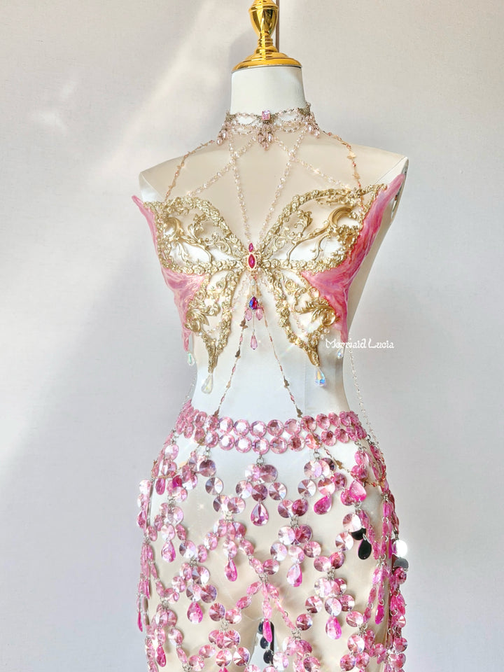 Rosette Majesty Resin Porcelain Mermaid Corset Bra Top Cosplay Costume Patent-Protected (Including Waist Chain)
