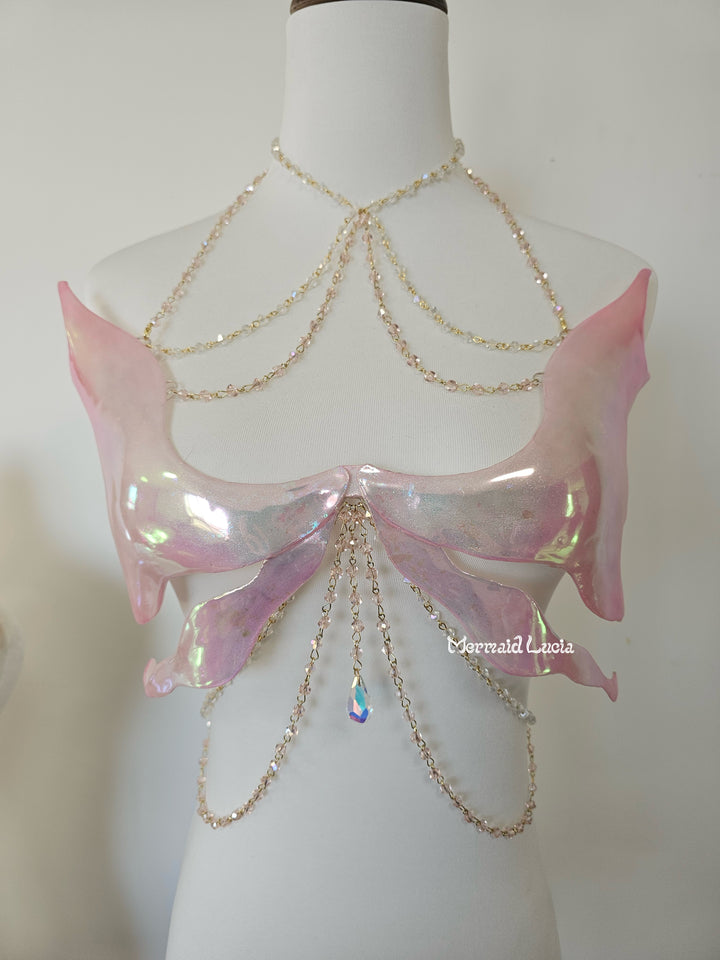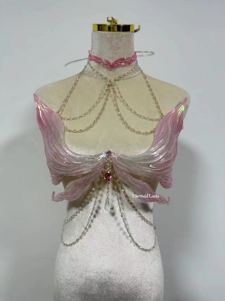 Pink Shimmering Angel Wings Resin Mermaid Corset Bra Top Cosplay Costume Patent-Protected