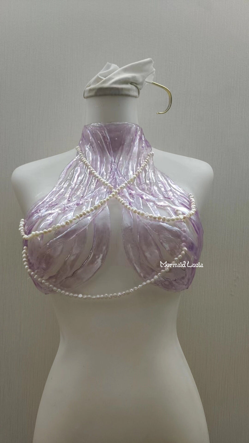 Purple Lavender Diamond Flowing Spring Water Pearls Resin Mermaid Corset Bra Top Cosplay Costume Patent-Protected
