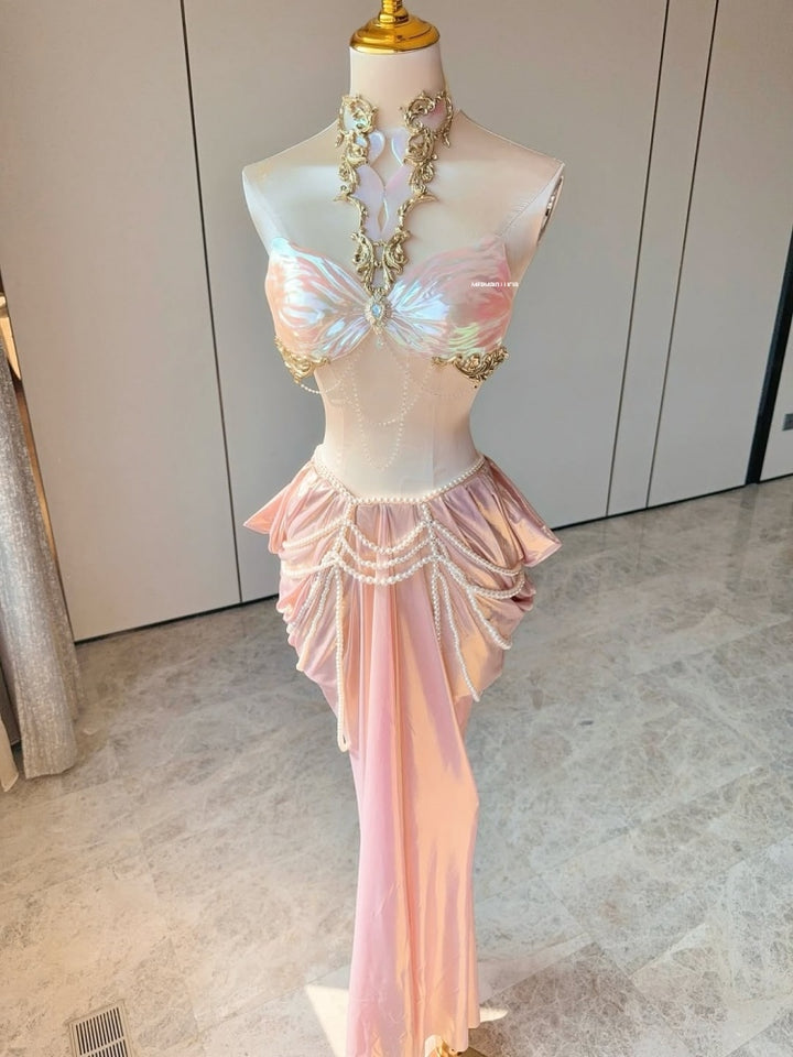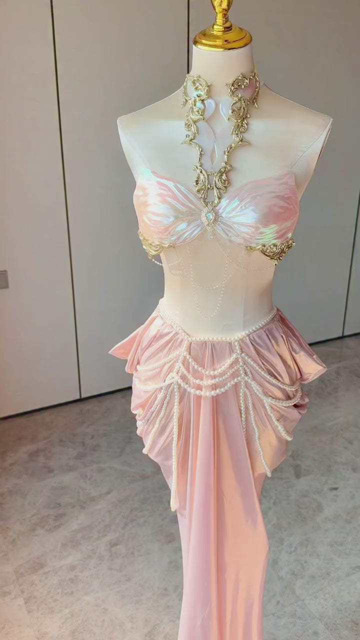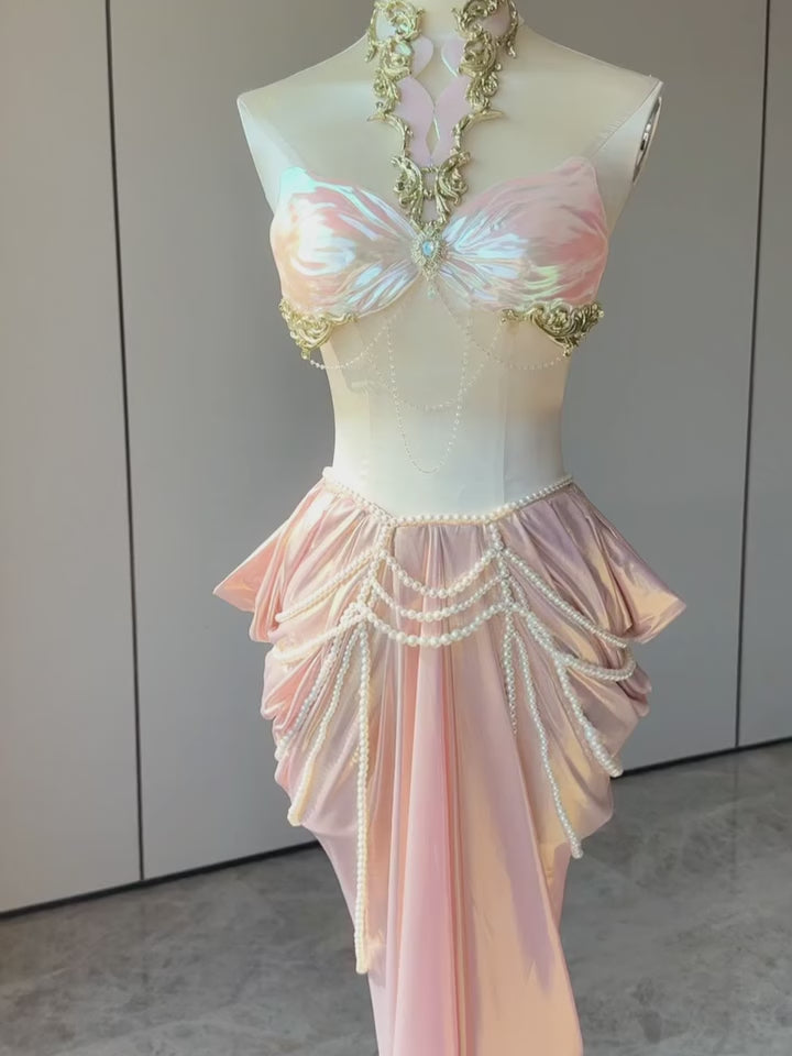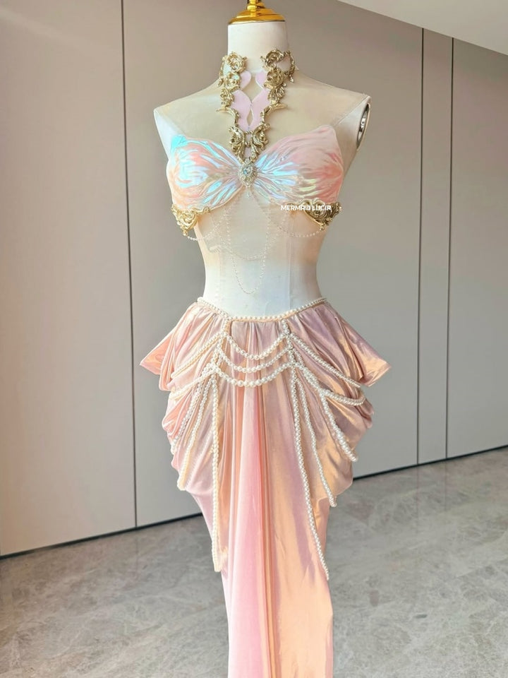 Opal Pink Pearl Resin Mermaid Corset Bra Top Cosplay Costume Patent-Protected