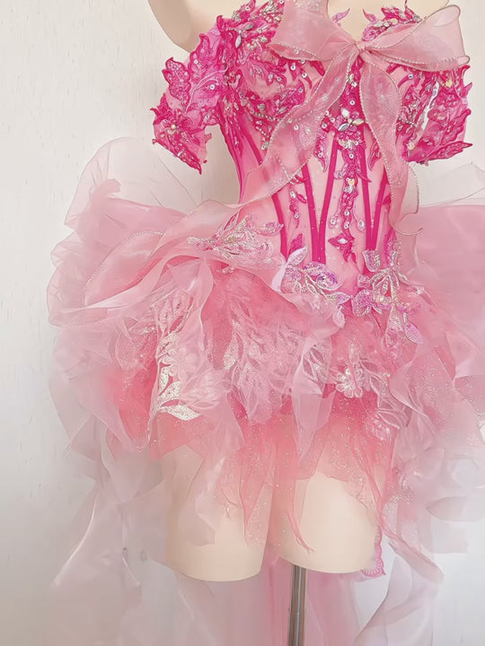 Pink Ruffled Tulle Train Dress Ensemble Costume Patent-Protected
