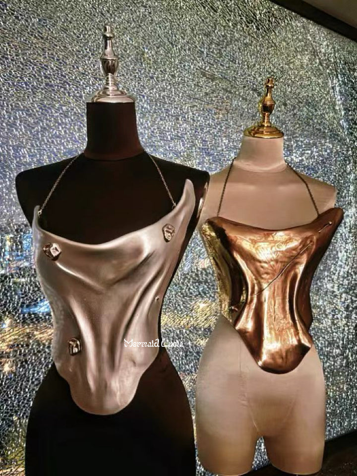 Golden Flow Curve Resin Mermaid Corset Bra Top Cosplay Costume Patent-Protected