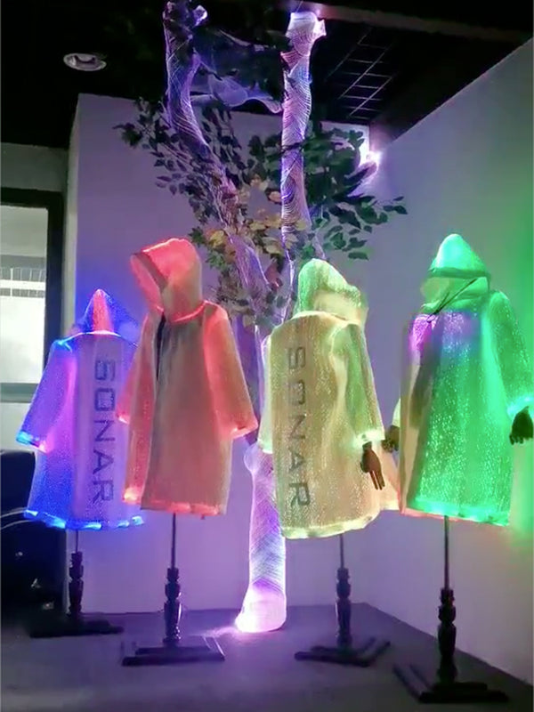 Luminous Wind Coat Club Bar Vest Coat with Hat Fiber Optic Fabric Smart APP Dance Christmas Halloween Cosplay