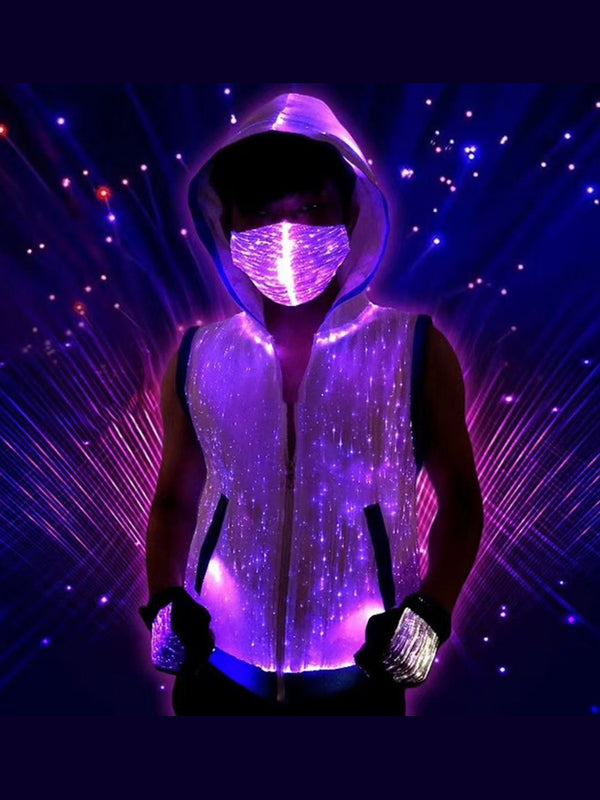 Luminous Club Bar Vest Coat with Hat Fiber Optic Fabric Smart APP Dance Christmas Halloween Cosplay