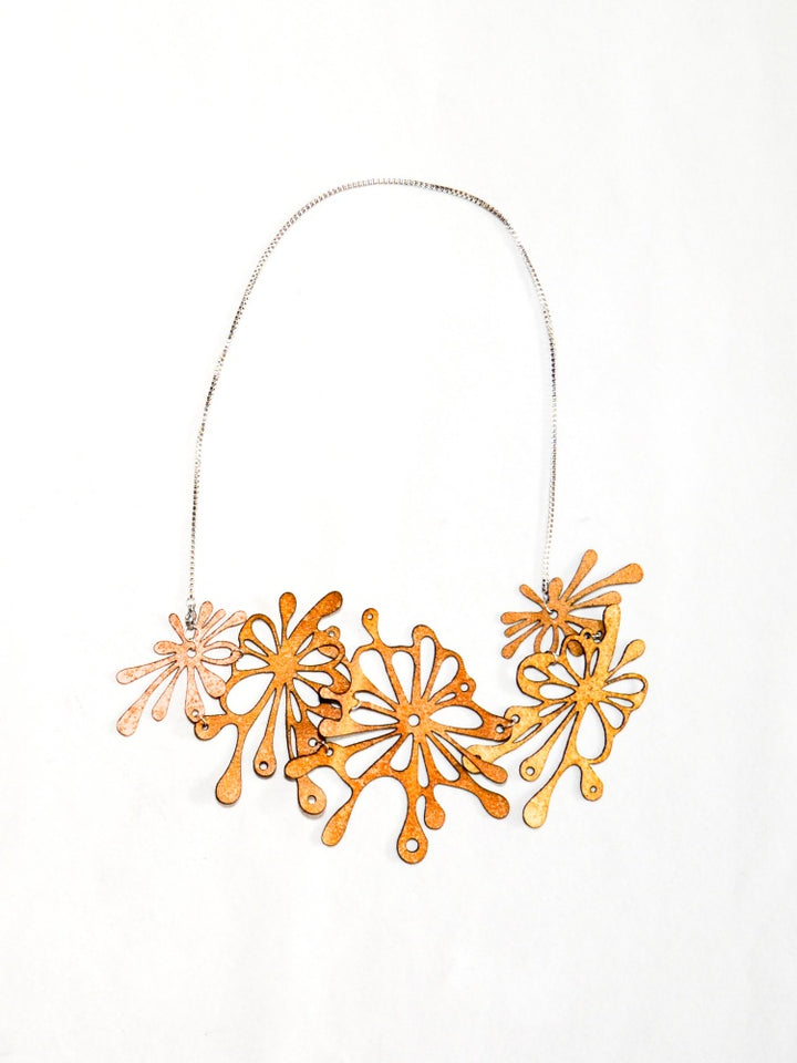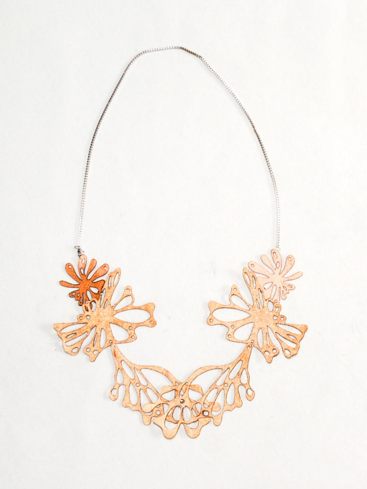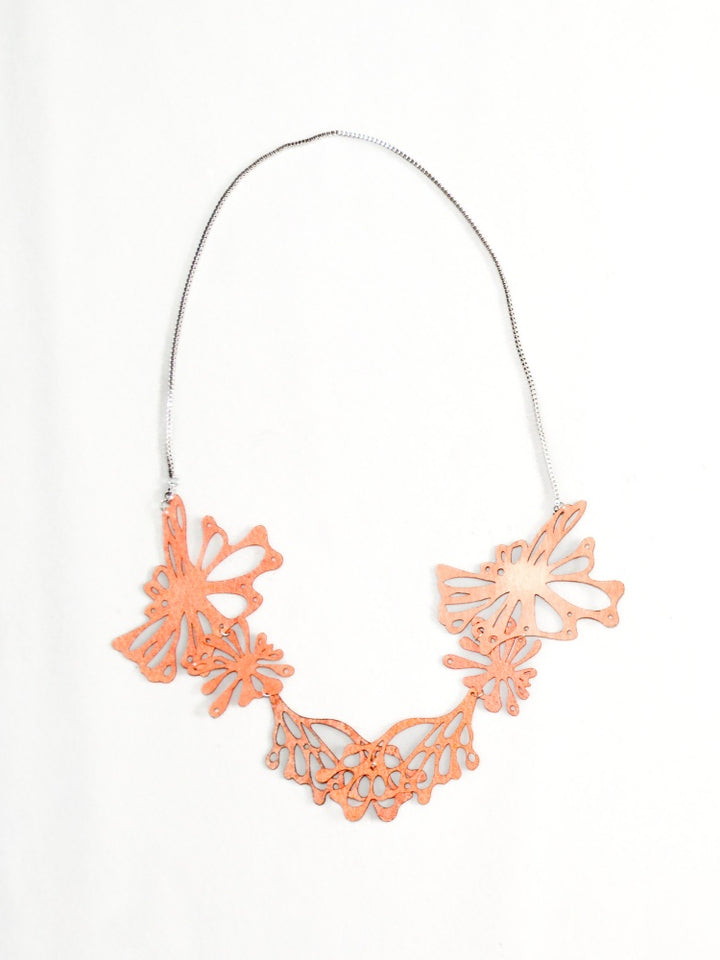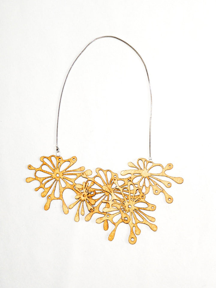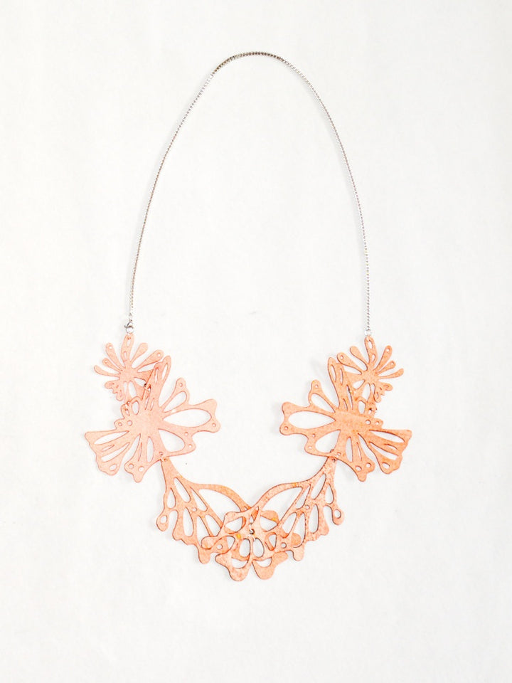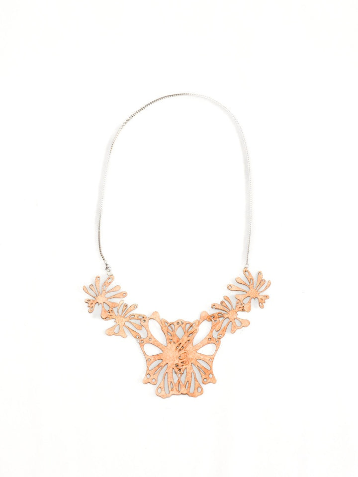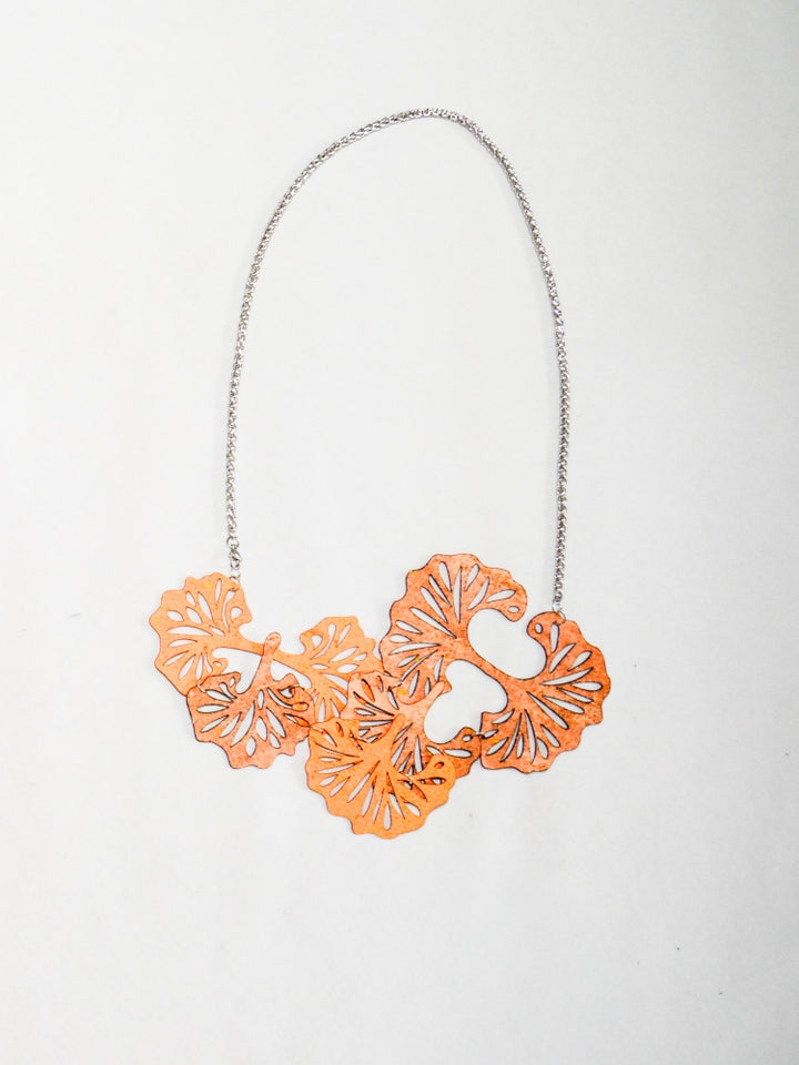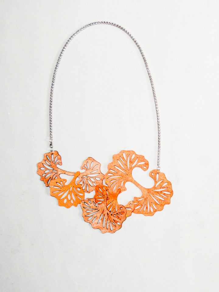 This unique necklace is crafted from innovative mushroom leather, a pioneering eco-friendly material that combines beauty, durability, and responsibility to the planet. Each design is registered with a UK Design Patent, ensuring exclusivity and artistry in every piece.