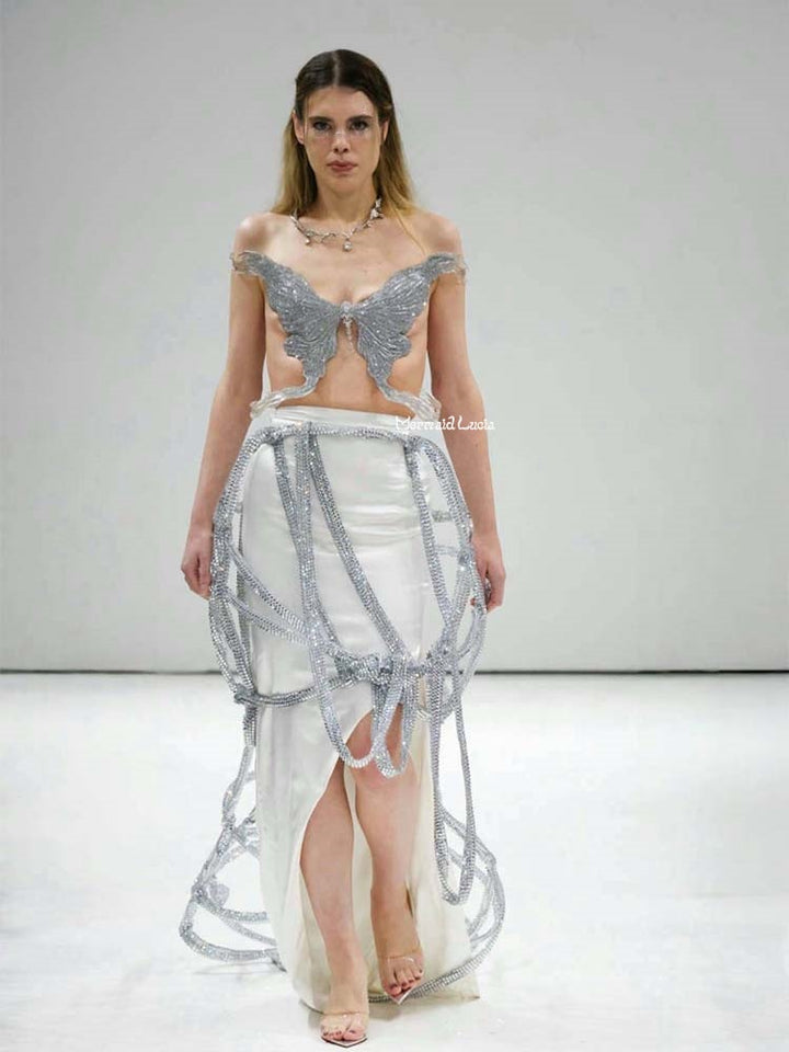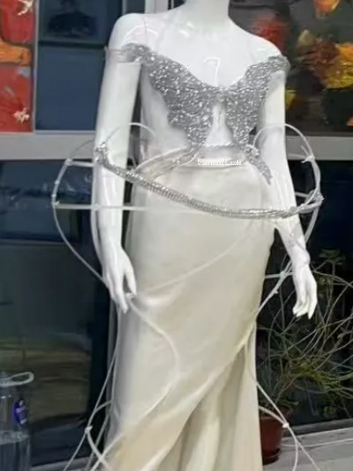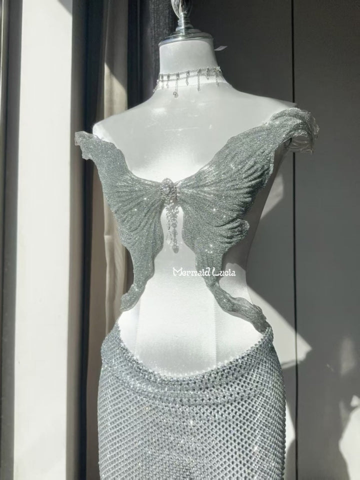 Silver Butterfly Gown Resin Corset Bra Top Cosplay Costume Patent-Protected